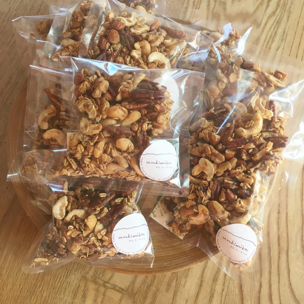 投稿日: 2021年12月3日2021年12月3日 投稿者: Chikakounkimikaのグラノーラ 自家製塩麹と有機のメイプルシロップシンプルな材料と有機のナッツで仕上げましたヨーグルトなどにかけていただくというよりはコーヒー、ワインやお酒のお供につまんで頂けるよう細かくせずナッツそのものを楽しんでいただくグラノーラですデスクワークの傍らに旅先や、ハイキングのお供にもぜひ「販売しないの?」というお声を何度か頂いて販売のカタチになりましたsize:S 100g/ size:L 140gございます