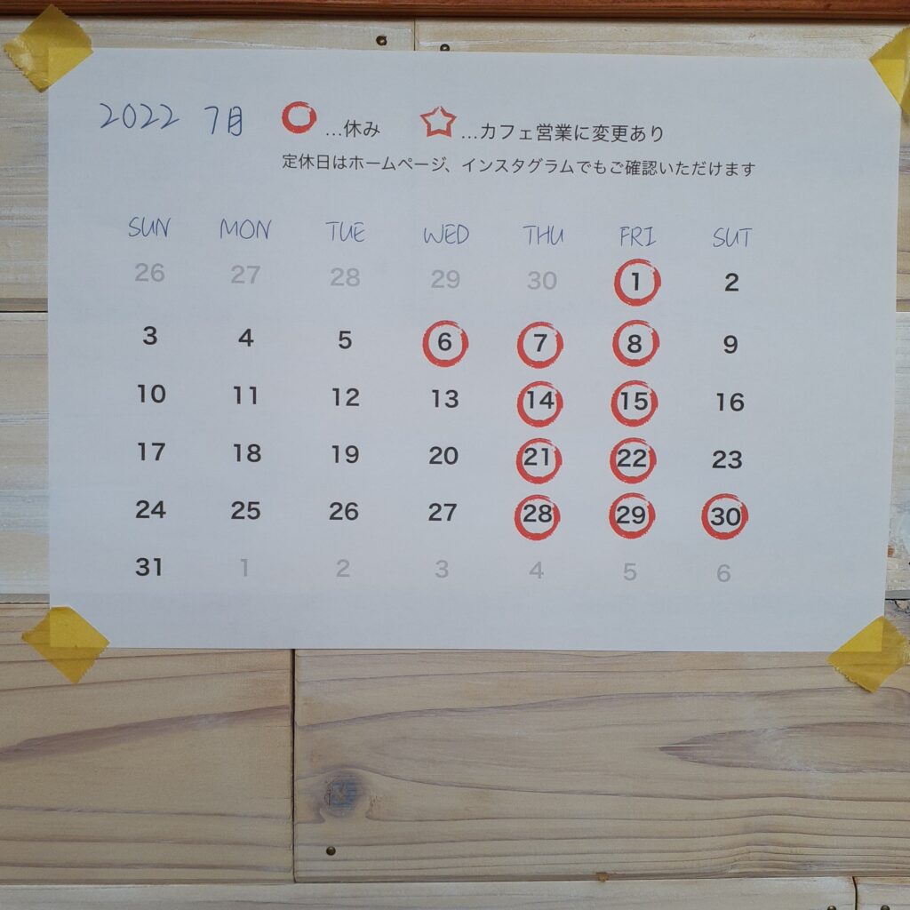 投稿日: 2022年7月1日2022年7月9日 投稿者: Chikako7月の営業のお知らせ お休みに追加がございます。今月は6日(水)、30日(土)もお休み頂きます日中の酷暑のなかわざわざここまでお越し頂けて有難い日々です皆さまありがとうございます草刈りできていない庭そんな草のグリーンでも癒しになってくれるはず!クラフトビールとグラスも冷えています今月も暑さに負けないで過ごしましょう!
