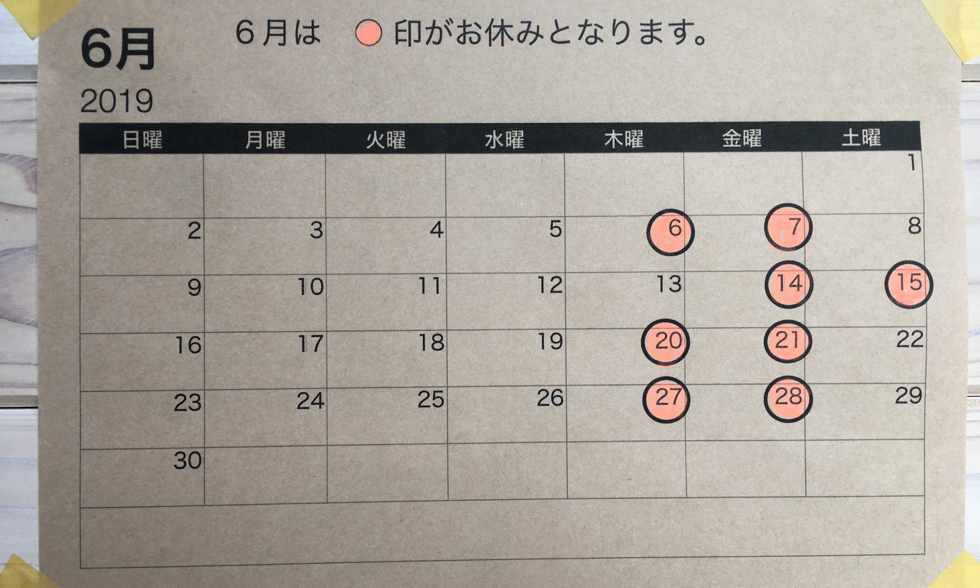 投稿日: 2019年5月29日2019年6月30日6月の定休日 お休みは2週目だけ14日15日の(金) (土)となります。ほかは(木)(金)をお休みとさせて頂きます。宜しくお願い致します。 ... 続きを読む