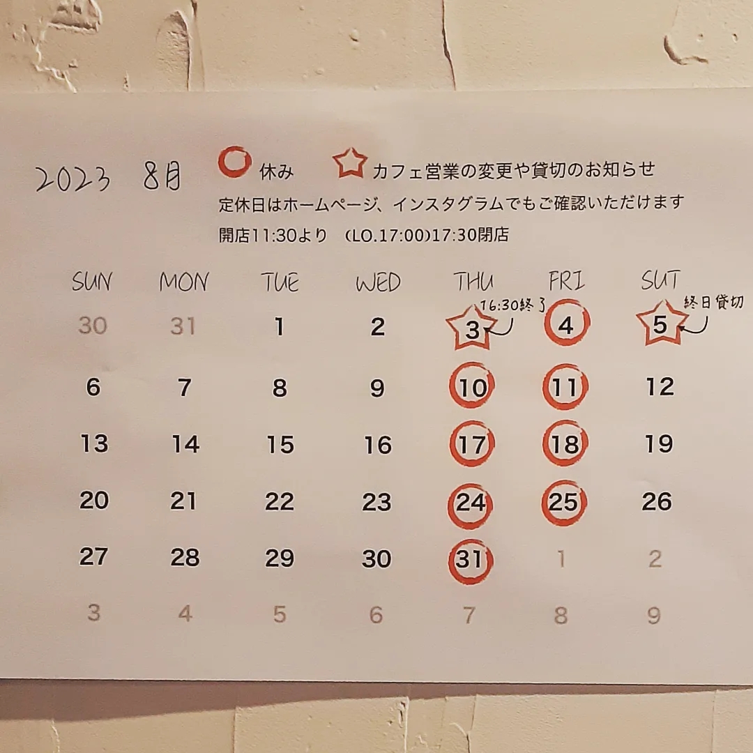 投稿日: 2023年8月29日2023年9月13日9月営業のお知らせ 残暑がきびしい1ヶ月になるのでしょうか?2日(土)はメンテナンスもあってお休み6日(水)は貸切営業となりますまた月末28日(木)... 続きを読む