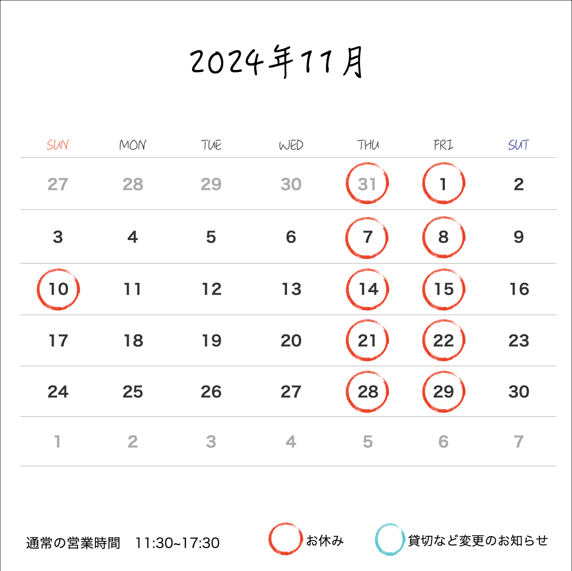 11月営業のお知らせ