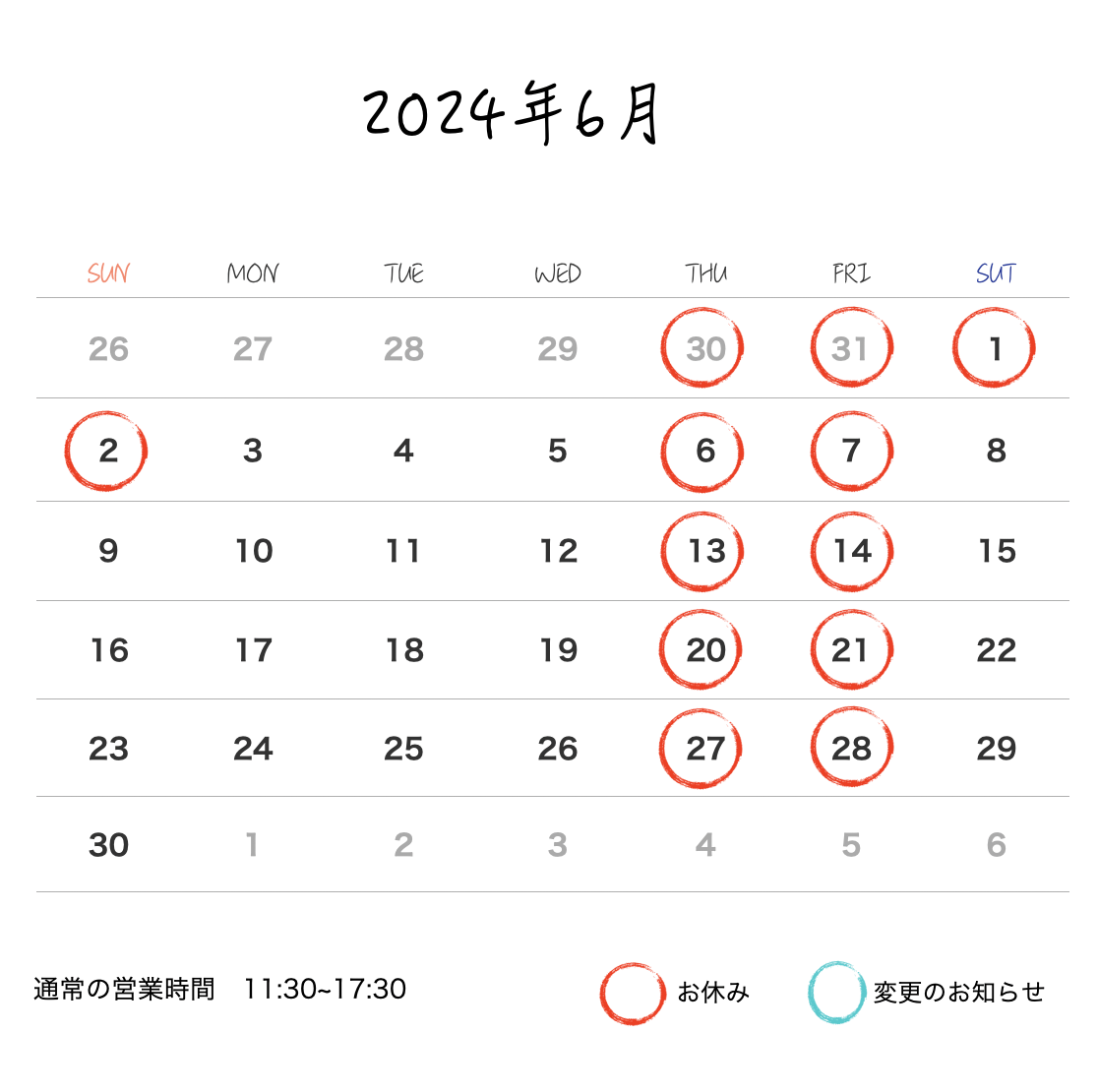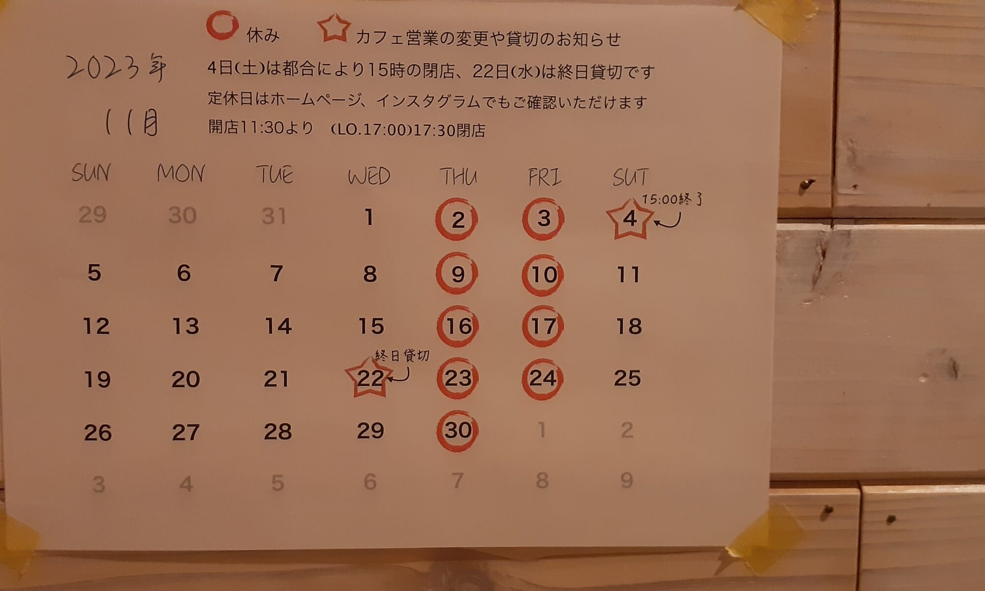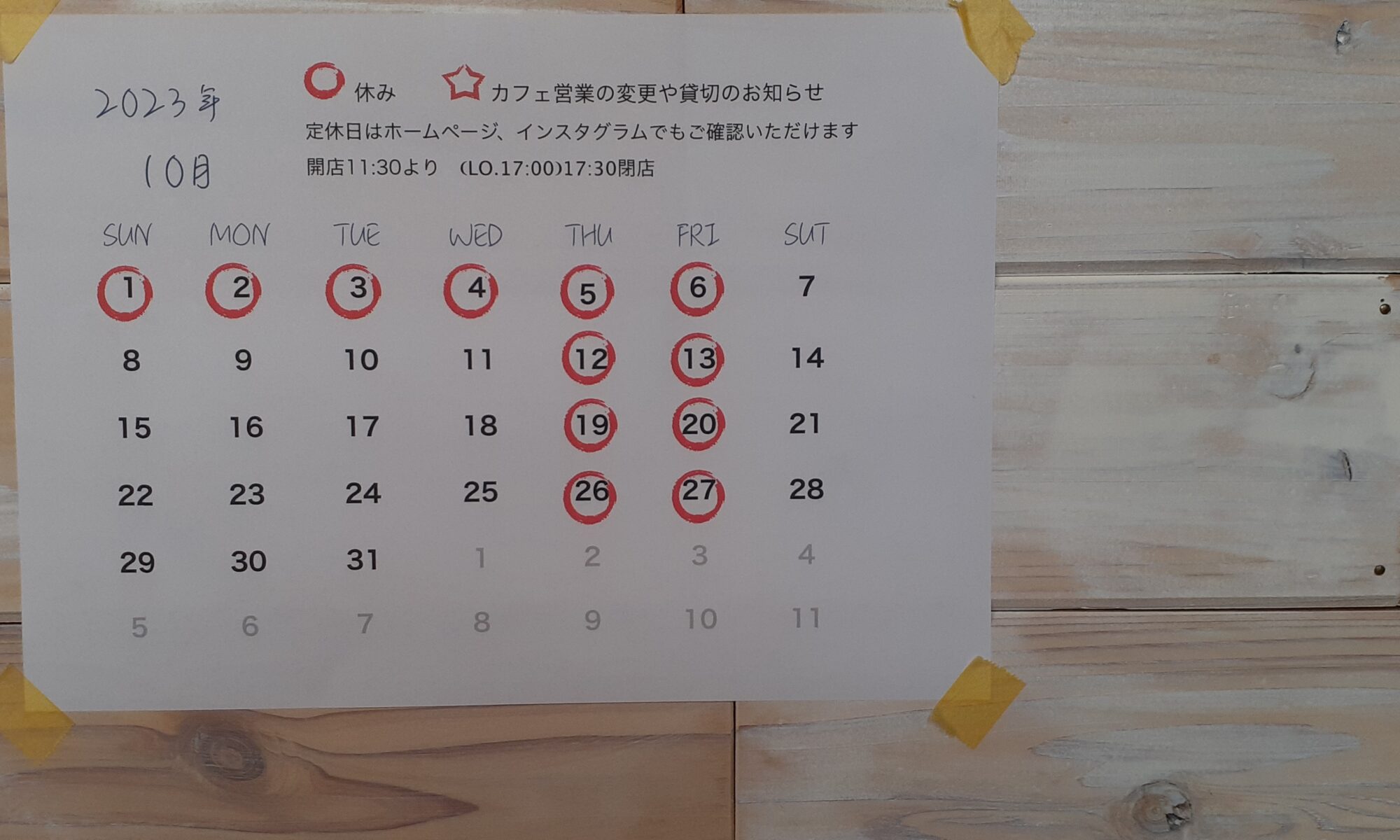 11月営業のお知らせ