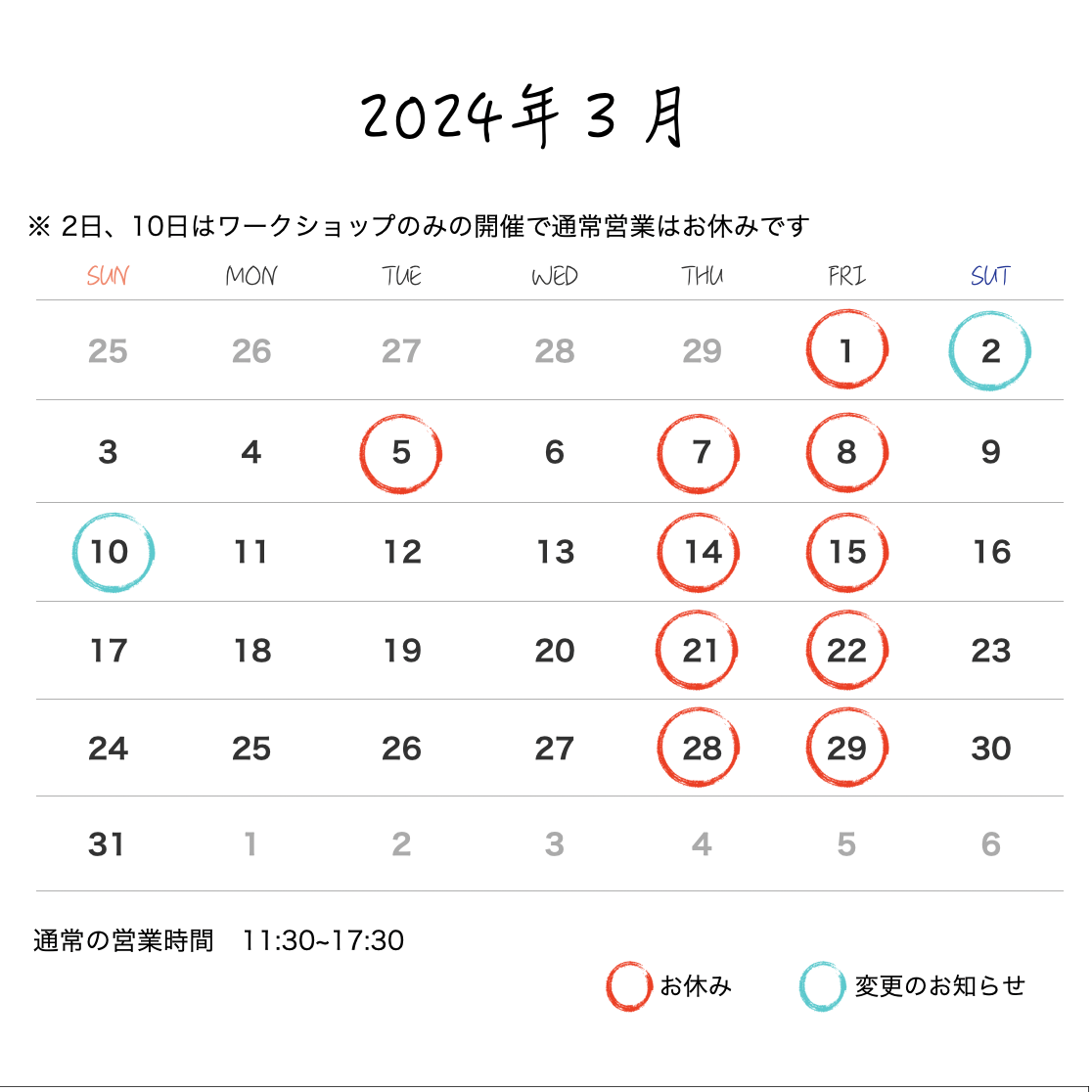 3月の営業のお知らせ