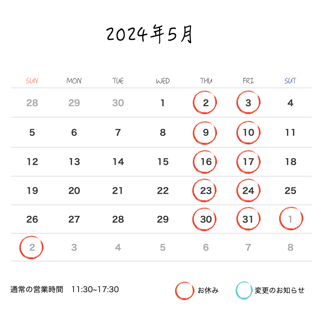 5月の営業のお知らせ