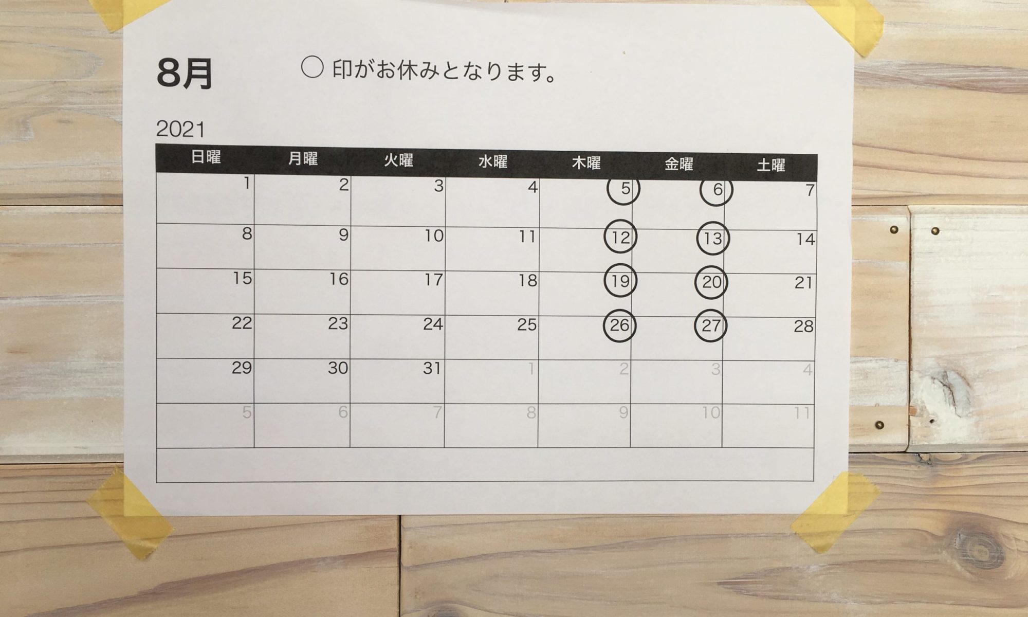 8月の定休日