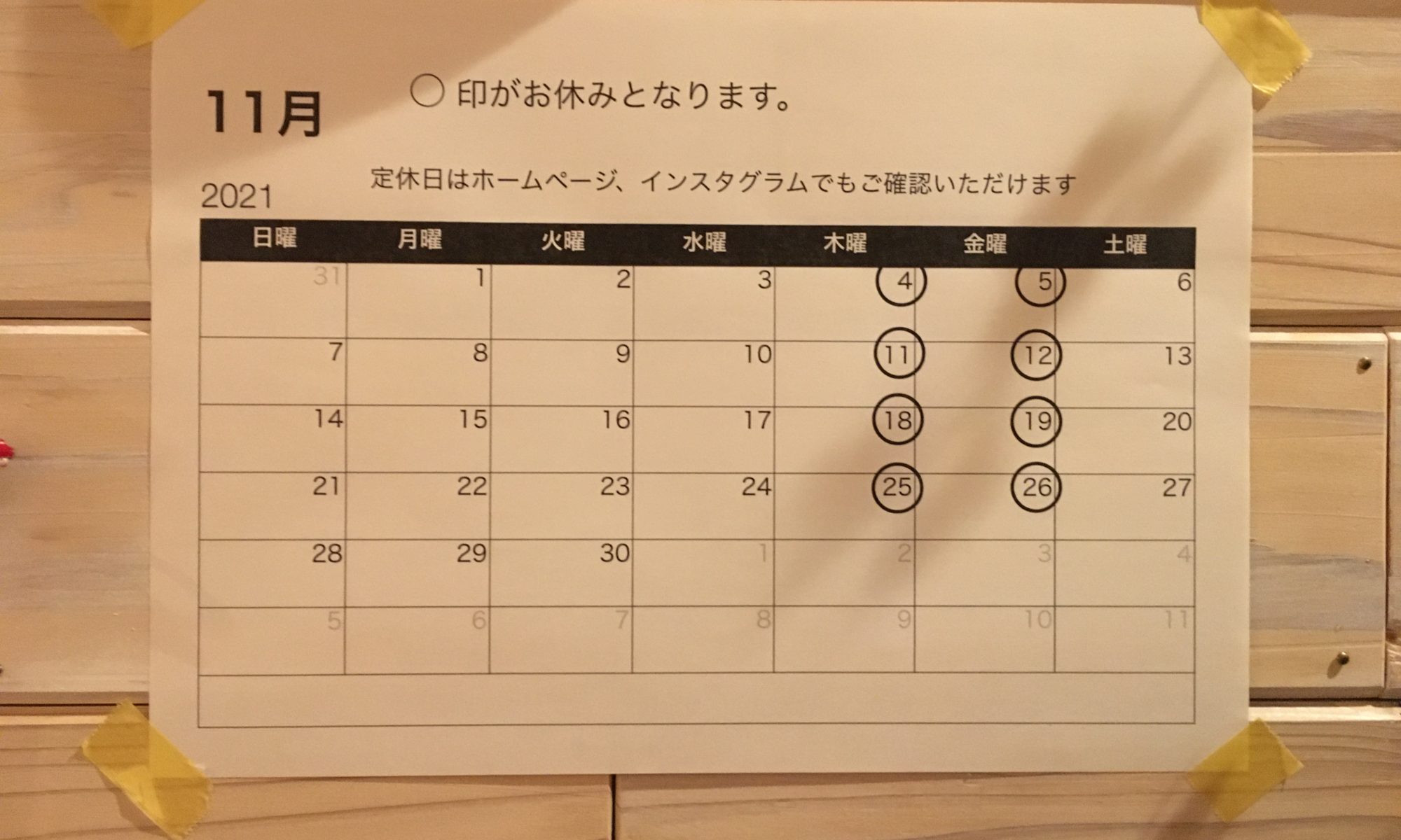 11月の営業のお知らせ