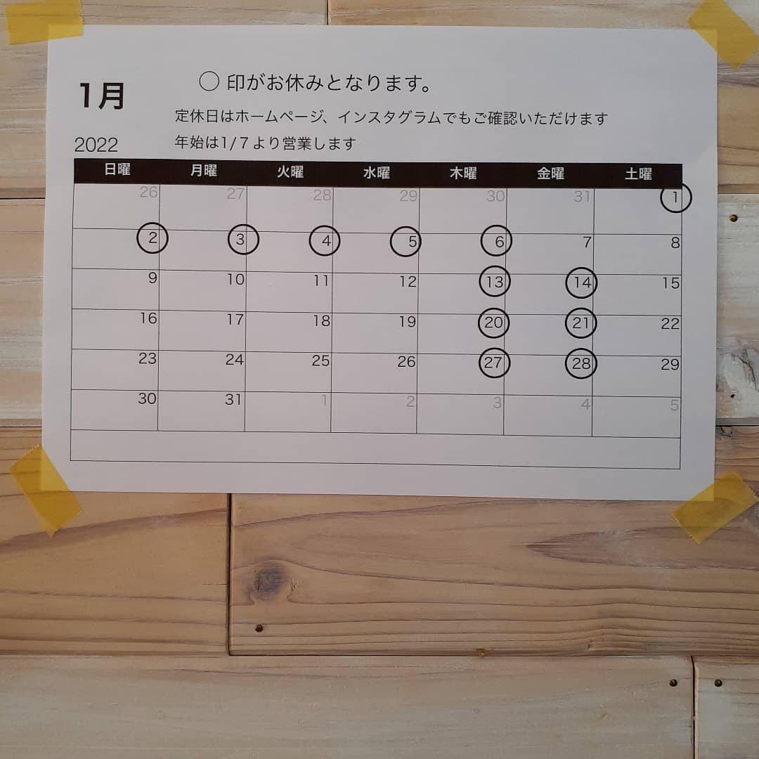 1月の営業のお知らせ