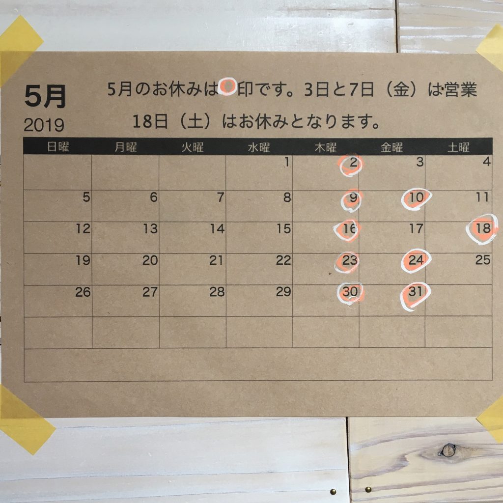 投稿日: 2019年4月27日2019年4月27日 投稿者: Chikako5月の定休日 3日と17日は(金)ですが営業いたします。3日は16時よりウクレレレッスンがございますので、レッスンが気になる!!という方は、この機会に見学がてらカフェにぜひお立ち寄りください。18日は(土)ですがお休みとさせて頂きます。ご不便お掛け致しますが、よろしくお願い致します。