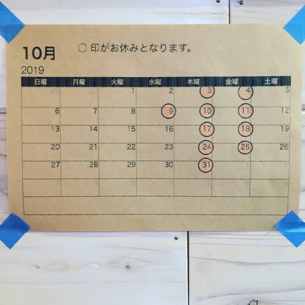 10月の定休日