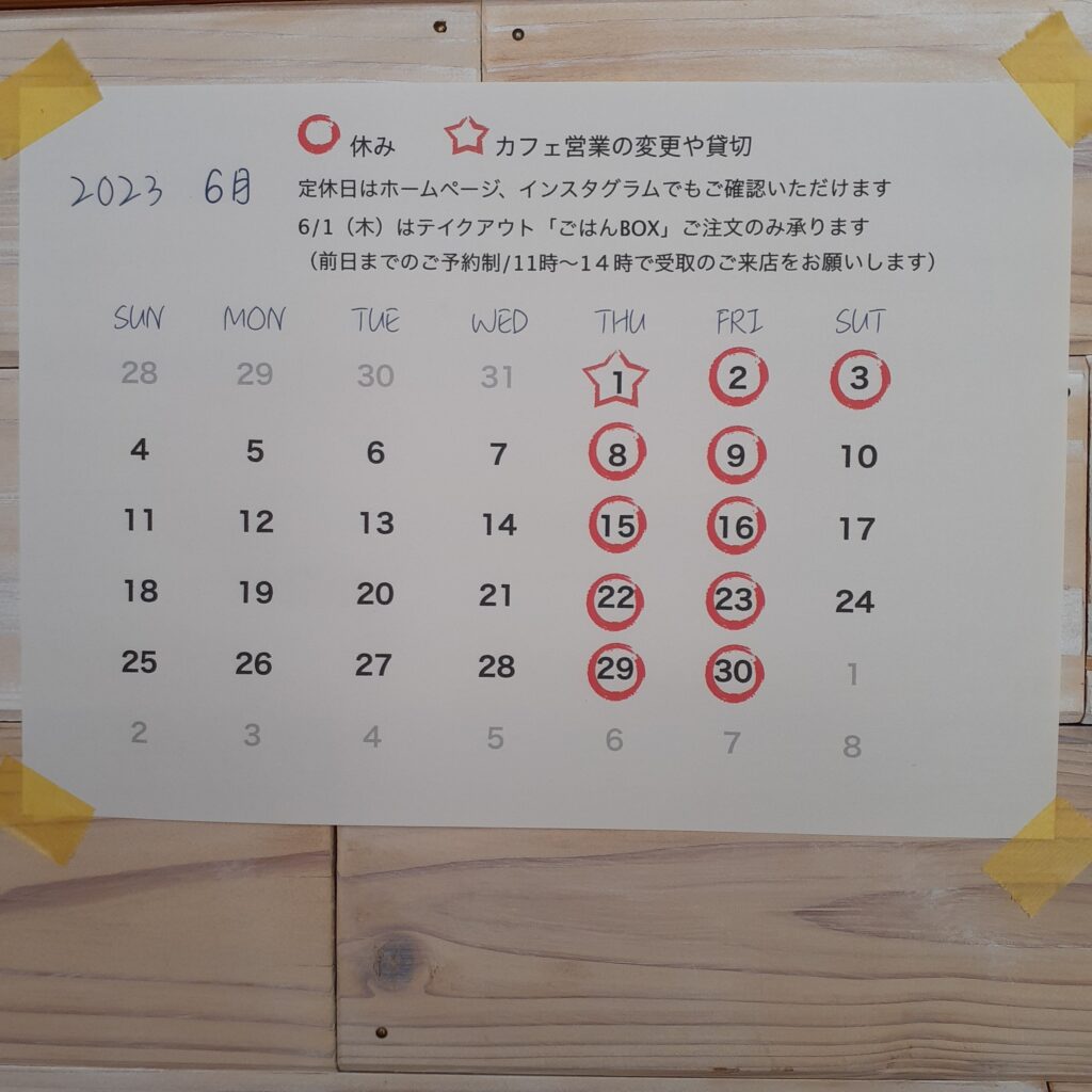 6月営業のお知らせ