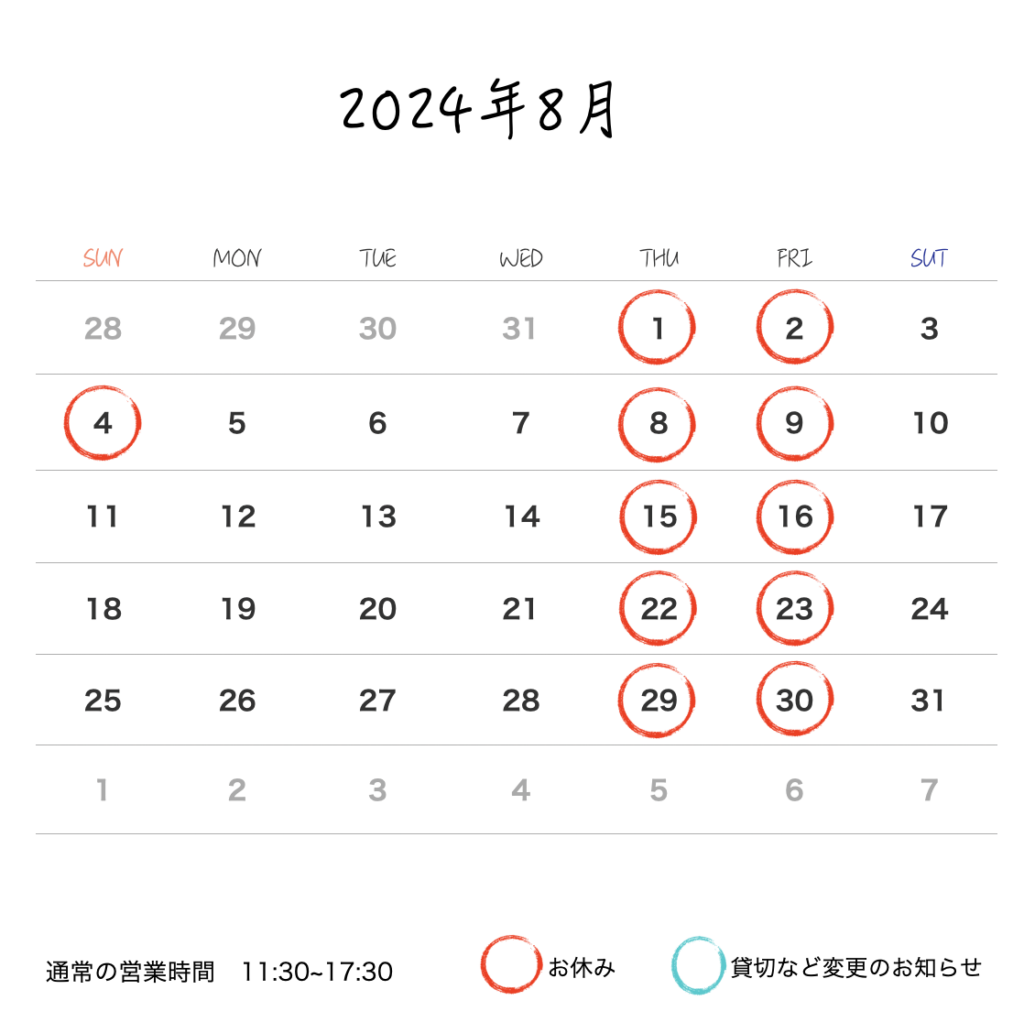 投稿日: 2024年8月1日2024年8月1日 投稿者: Chikako8月営業のお知らせ 今日から8月ですね日中の強い日差しのなかご来店くださるお客様には本当に感謝です4日の日曜日はお休みとなりますのでお間違いないようにしばしの暑さを上手に乗り越えて参りましょう〜今月もよろしくお願いします