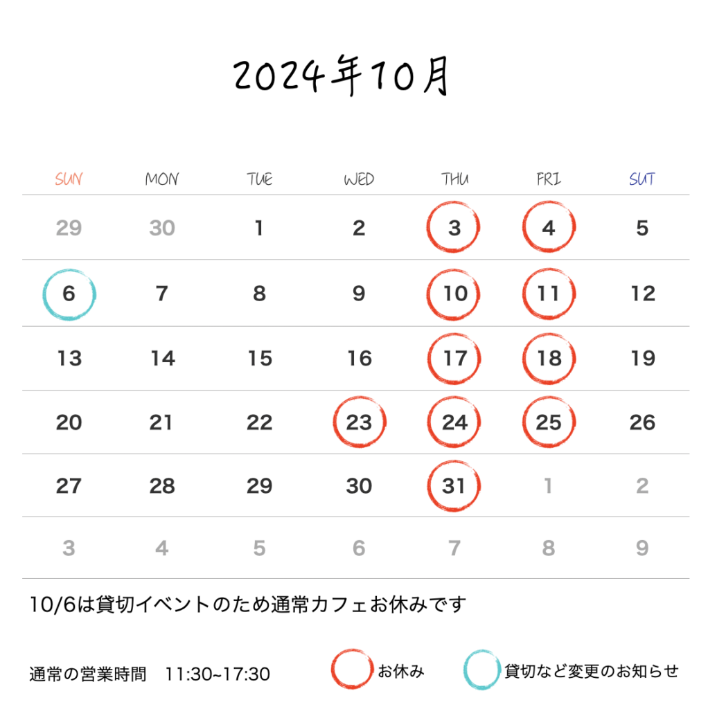 10月営業のお知らせ