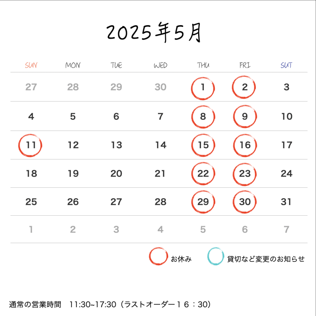 木曜と金曜のほかに11日の日曜もお休みとなります